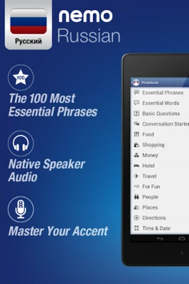 Nemo ایپ آپ کو فوری اور پراعتماد طریقے سے روسی زبان کے مفید ترین الفاظ سکھانے کے لیے بنائی گئی ہے۔ دنیا بھر سے لاکھوں صارفین کے اعتماد کے ساتھ، Nemo اب اینڈرائیڈ فونز اور ٹیبلٹس کے لیے دستیاب ہے تاکہ آپ باآسانی روسی بولنا شروع کر سکیں۔